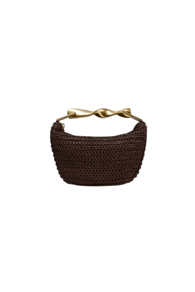 A rich brown woven bag instantly gives luxe coastal energy. This style pairs beautifully with linen trousers, white dresses, and neutral basics.